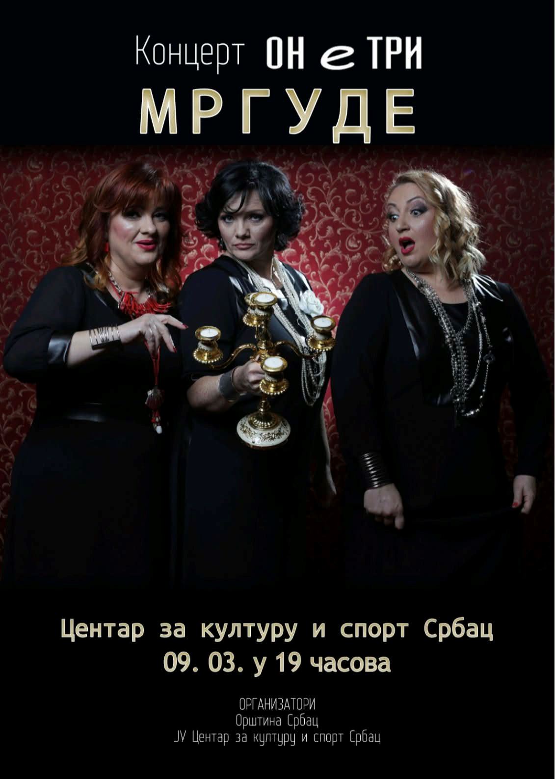 Opština Srbac i Centar za kulturu i sport organizuju u ponedjeljak, 9. marta, koncert “One tri – Mrgude” koji će se održati u Domu kulture “Uglješa Kojadinović” kao poklon damama za Međunarodni dan žena.